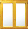 Ventana de madera maciza o laminada con goterón de aluminio. Se ofrece en diferentes acabados y para su fabricación se utiliza madera de pino de Suecia, pino Melix, Iroko o Roble. Admite contraventanas interiores y exteriores e incluye doble acristalamiento.